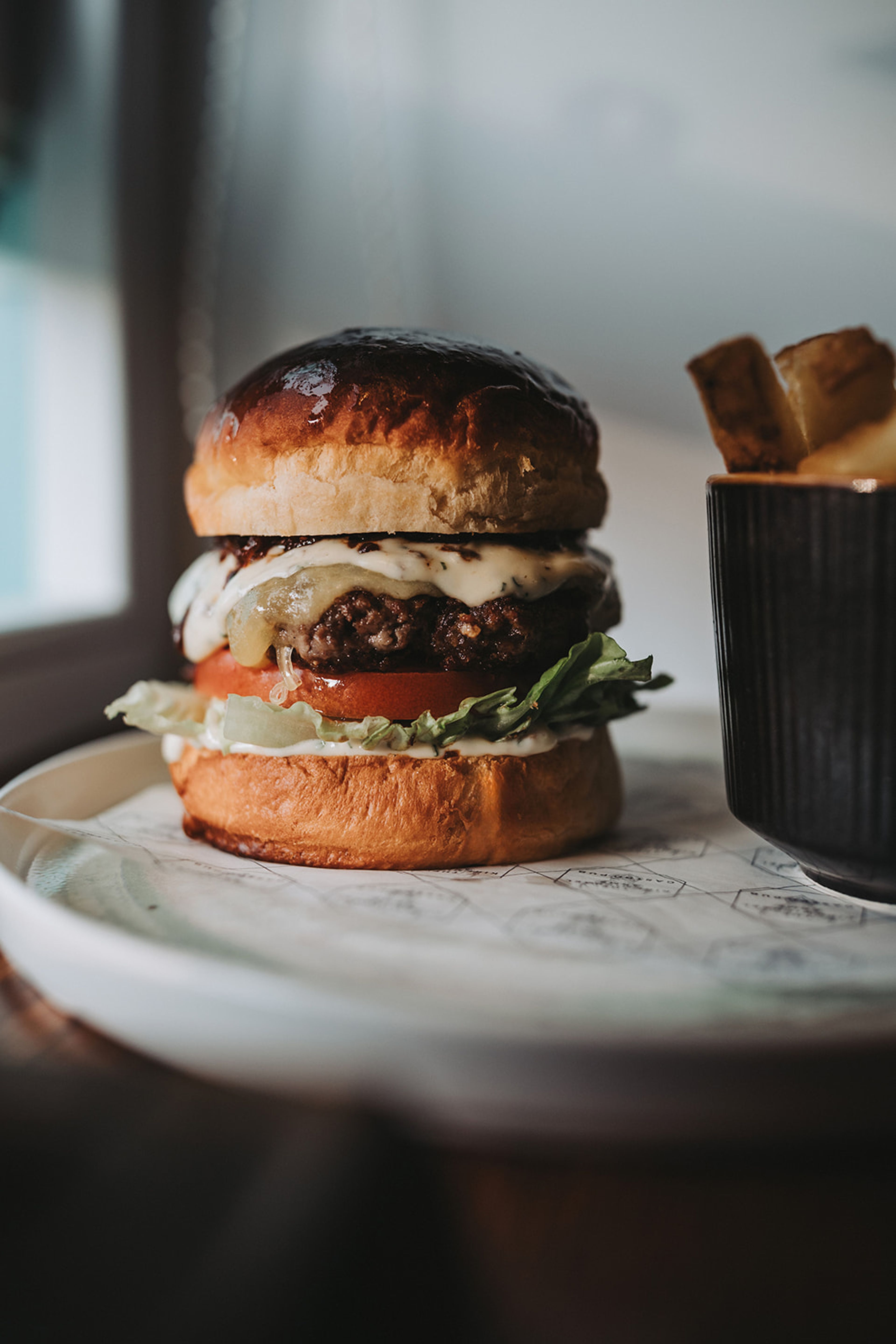 Our beef comes from Girvan Mains, just a few miles down the road. We're talking properly reared cattle, dry-aged on site, then ground for our burgers. Topped with miso onions, tomato and truffle mayonnaise. Served as a main on our lunch menu at £19, this isn't your typical pub burger - it's what happens when you source properly and care about every element on the plate.